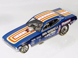 Ron O'Donnell's Big Noise 'Cuda OK, so everyone knows that the name of the state is pronounced without the "s" at the end, but the "Big Noise From Illinoi" just doesn't have the same ring to it, does it? Actually, in the environmentally conscious 1970's, the "Big Noise" from anywhere didn't sound correct (politically correct wasn't even a term then) so Ron O'Donnell changed the name of the car to the "Damn Yankee." There, that shouldn't offend anyone, should it? But then, when you grow up on the south side of Chicago, offending anyone never seems to be a real problem. Ron O'Donnell was one of many very successful match racers from the "Windy City." In a town that would produce such notables as "Mr. Norm," Gary Dyer, Kenny Safford, the "Chi-Town Hustler," Don Schumacher, Ron Pellegrini, Dale Creasy Sr., Gary Bolger, Cliff Brown and many more, Ron was one of the best, most talented and most versatile of the bunch, and match racing was a way of life for him. In the early '70's most Funny Car drag racers made their living by traveling the country in search of the perfect match race, a best two-out-of-three or three-out-of-five encounter that would pack the fans into the local tracks. Ron, who actually took his first ride in one of the legendary "Mr. Norm" cars, would become a fixture at places like Byron Dragway, Cordova and other non-national event tracks. And, while he did have moderate success on the IHRA circuit in the early '70's, where he went to a pair of final rounds, most of his fame and notoriety came on the local level. Ron may have driven more cars down more bad tracks than just about any other driver in the history of the sport, and it was on those tracks where his ability to work on and adjust the clutch really paid off. His beautiful red, white and blue car began life as a Barracuda, later became a Chevrolet Vega and, believe it or not, ended its career as a Mustang, a badly burned Mustang, but through it all, Ron O'Donnell made some really big noise in the drag racing world. Only 2000 pieces of the "Big Noise" funny car were made. Now in stock, price £66-99